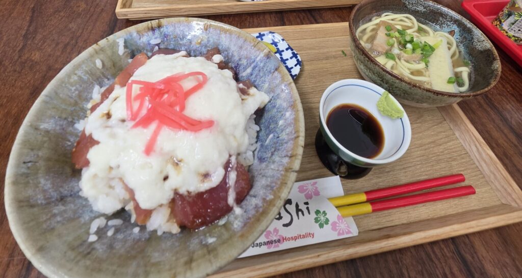1件目の内見は13時に予約しているので、それまでお昼休憩。離島ターミナルのお食事処ソムリエさんでマグロやまかけ丼をいただきました。丼を頼んでもミニ八重山そばがセットでついてきて2,000円でした。以前より料金上がった気がしますが美味しいのでおーけー。